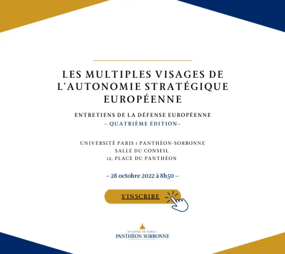 Colloque Image de couverture Le vendredi 28 octobre 2022 08h50 18h00 Les Entretiens de la Défense Européenne Ajouter à mon calendrier